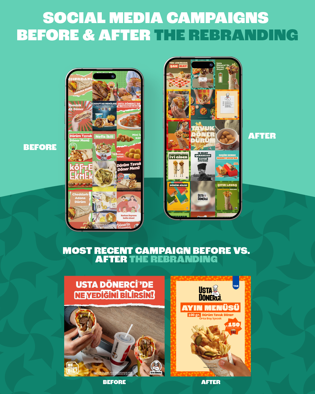 The Usta Dönerci rebranding project focused on refreshing a well-established Turkish fast-casual food brand while preserving its authentic, familiar spirit. I led the design process from initial concept to final rollout, developing a contemporary visual identity that feels warm, approachable, and full of character.